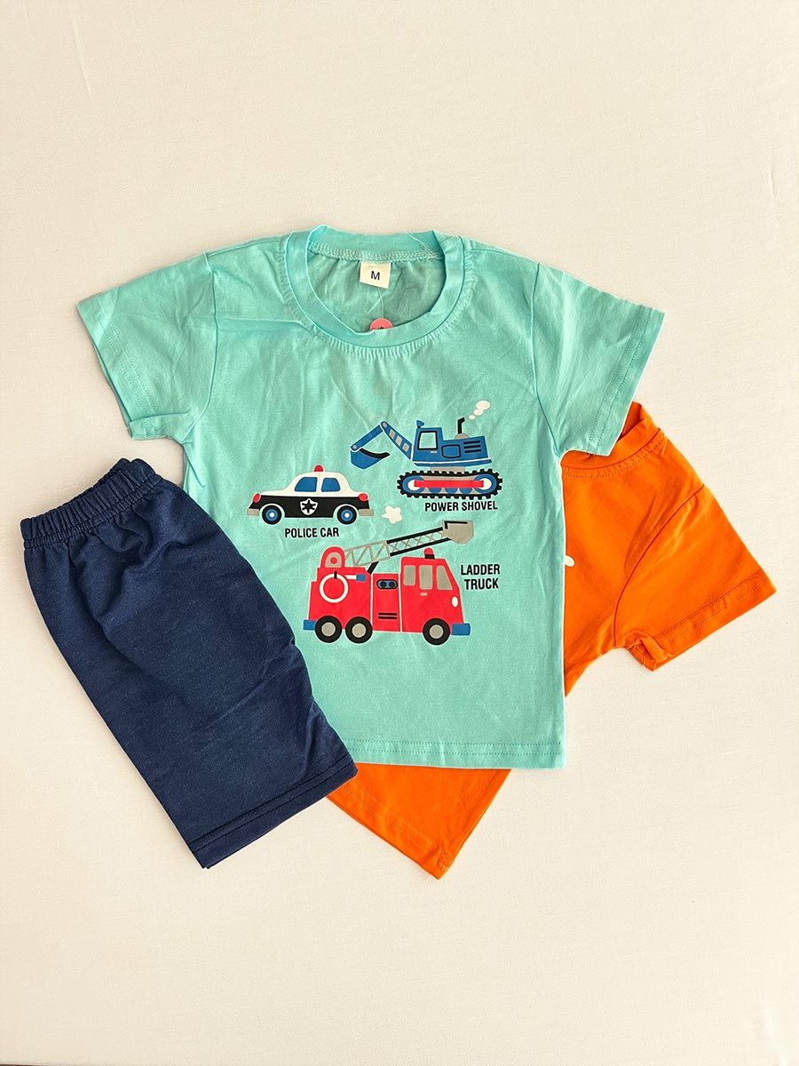 تیشرت شلوارک پسرانه طرح ماشین 7126