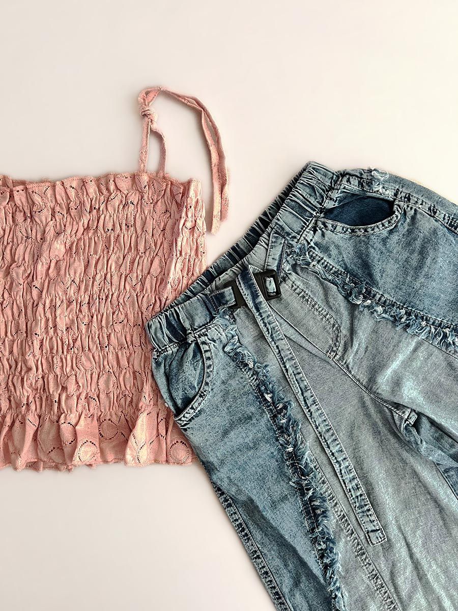 تاپ موجود فری سایز با کشسانی بود و کراپ کار قابلیت تنظیم سایز دارند.