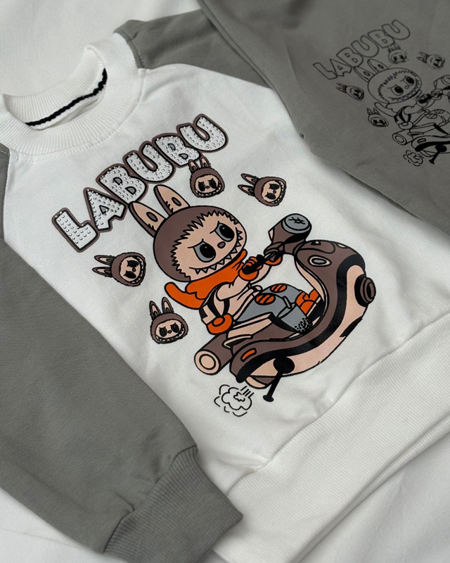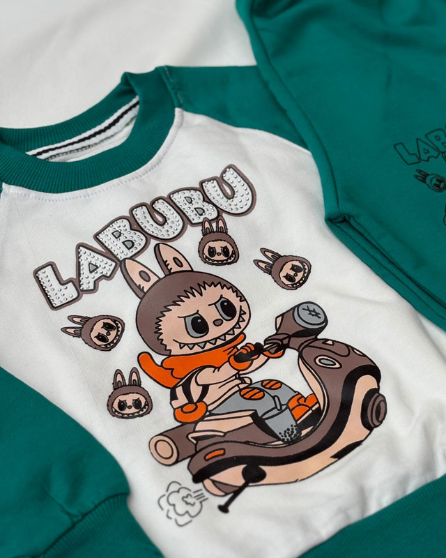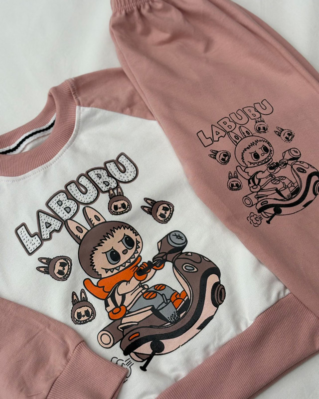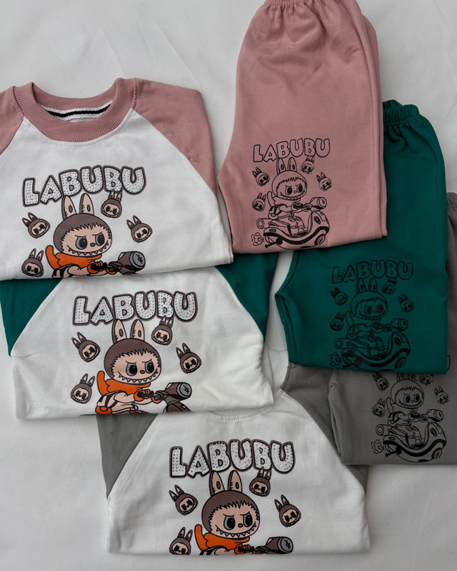 این ست با طرح ترند لبوبو یکی از محبوب ترین ست ها بین بچه ها است، چاپ روی لباس با کیفیت بالا و جنس آن نیز نرم و با دوام است.