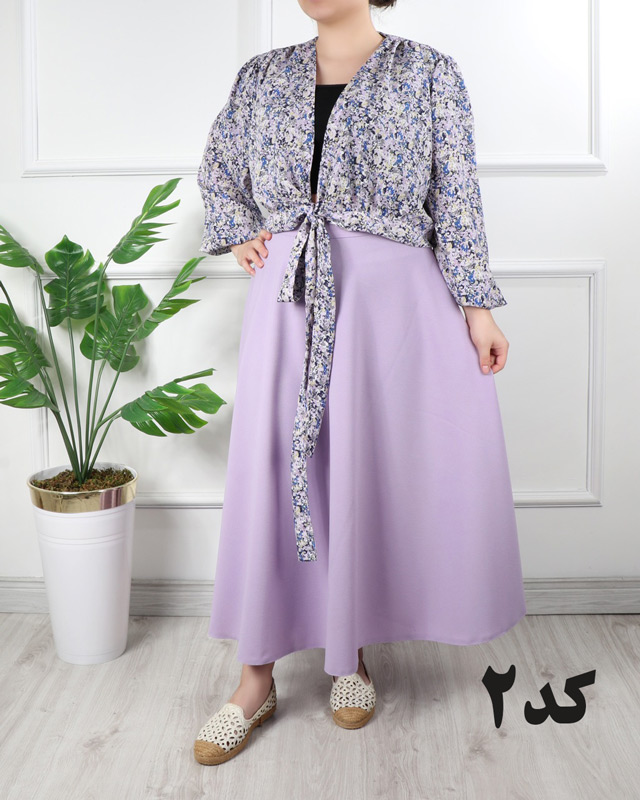 سایز 2 :دور سینه کراپ 120 سانت دور حلقه آستین 52 سانت قد آستین 56 سانت قد کراپ 45 سانت دور کمر دامن 80 سانت دور باسن 160 سانت قد دامن 85 سانت