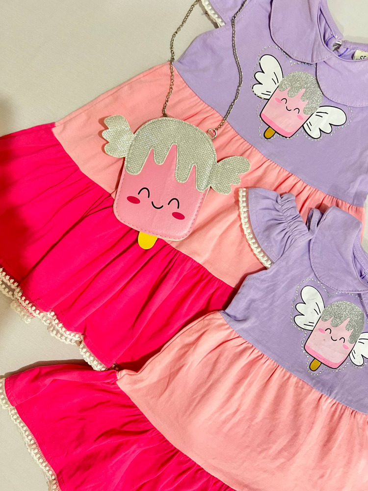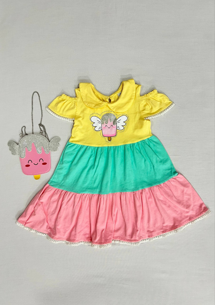 این پیراهن با رنگ‌های شاد و طراحی خاص، مناسب مهمانی‌ها، جشن‌ها و حتی استفاده روزمره است و استایل خاصی به دختران کوچک شما می‌بخشد