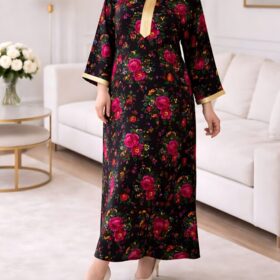 پیراهن ساحلی سنتی گلدار نوارطلایی ترکمنستان