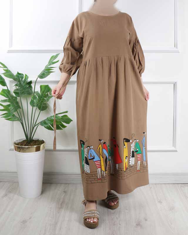 پیراهن لینن چاپ طرح بازار