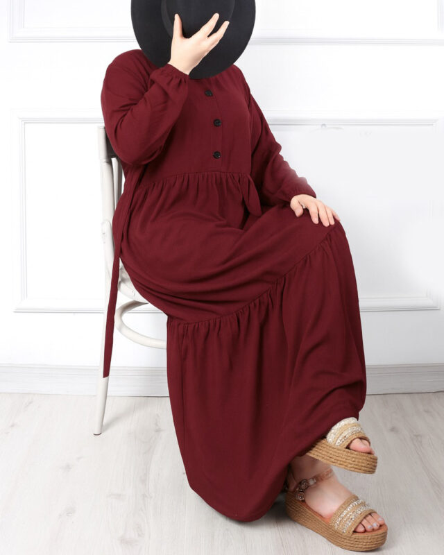پیراهن نخی جلو دکمه ململ 6943