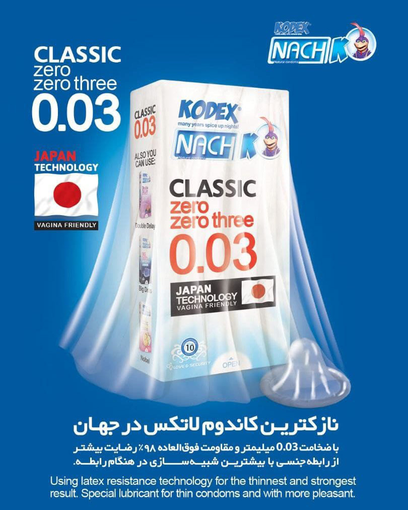 معرفی کاندوم ناچ کدکس مدل 0.03 کلاسیک بسته 10 عددی