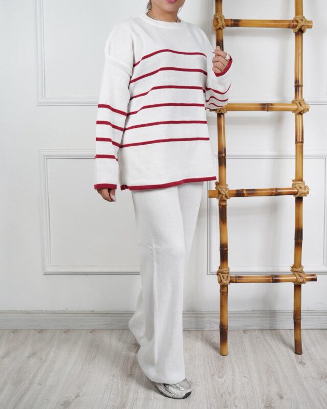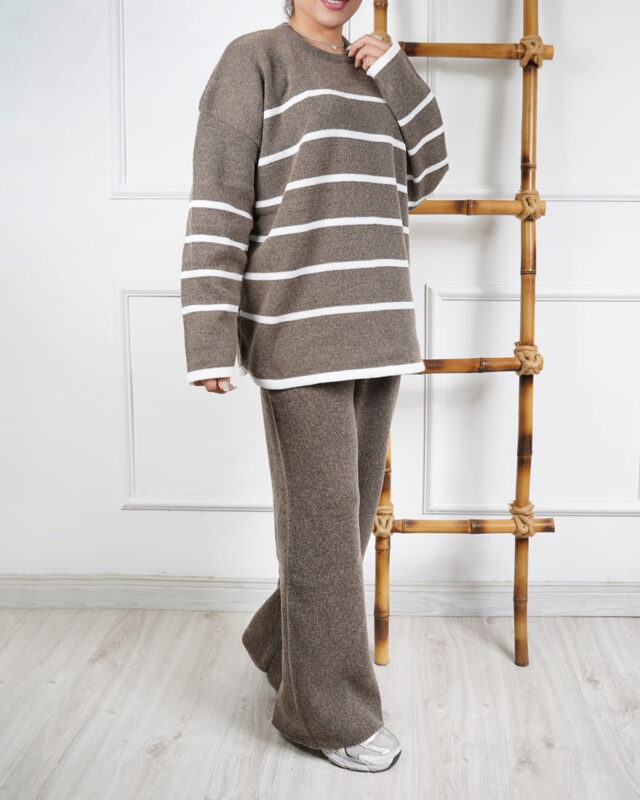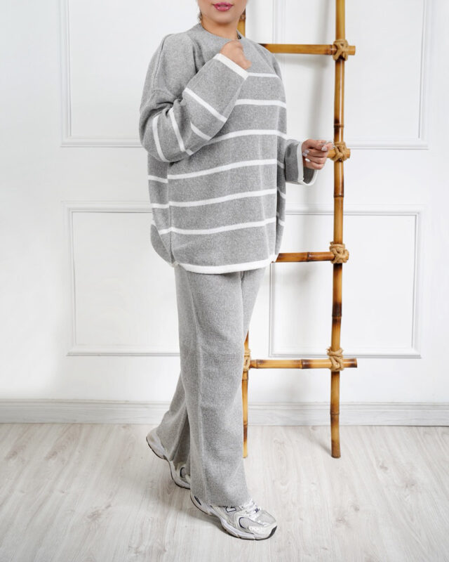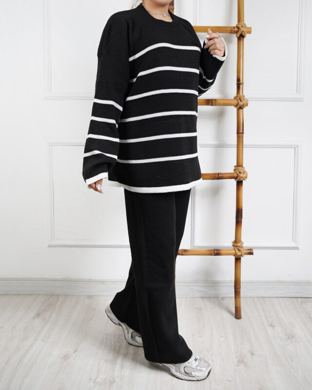 ست بلوز بافت و شلوار نوار خطی کد ۲۰۵۱ از بازار بزرگ ترکمن بهترین انتخاب برای شماست.